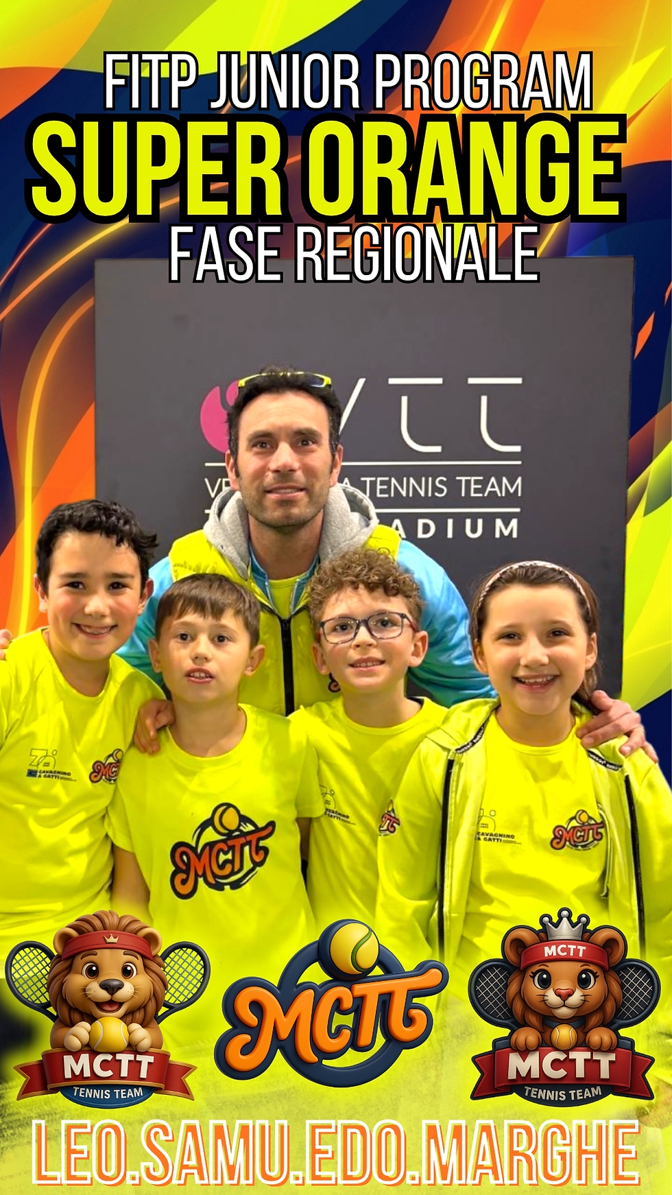 Una giornata intensa, emozionante e ricchissima di tennis quella vissuta dai nostri leoncini MCTT nella Fase Regionale Super Orange del FITP Junior Program a squadre, disputata il 28 marzo presso il Vehementia Tennis Stadium di Lagnasco.
